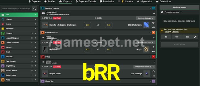 O bRR oferece uma grande seleção de opções de apostas em e-sports com probabilidades competitivas